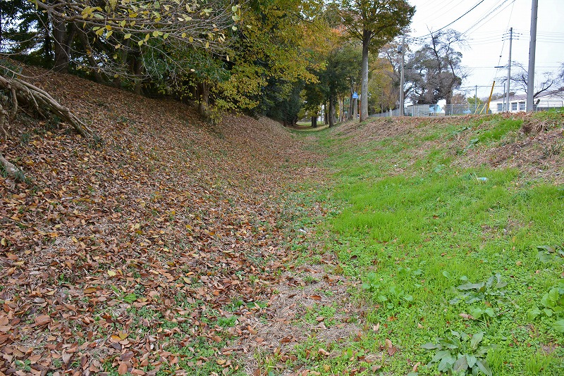 これとは別に北側と東側の一部を中心として堀跡ならびに高さ3メートルほどの土塁が残存している。