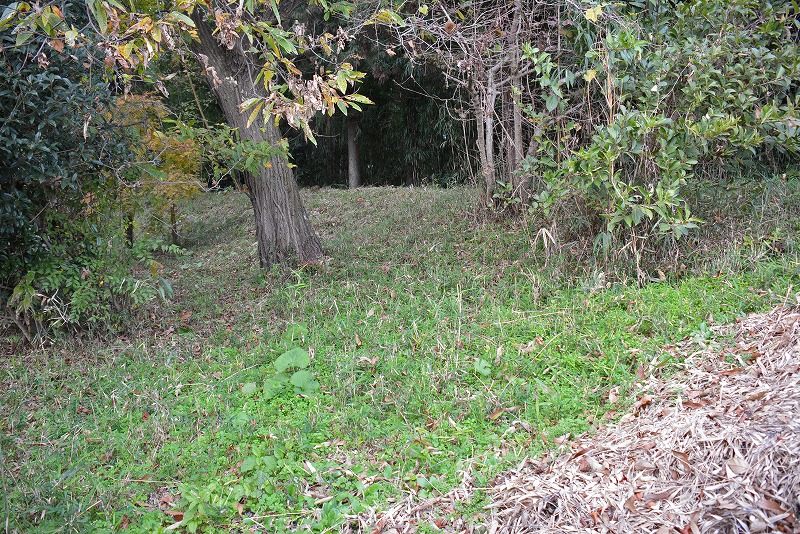 南側は比較的良好に保存されているものの、草木が生い茂っているためやや見づらくなっている。