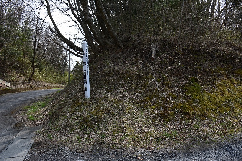しかし、よくよく冷静に県道186号線側から眺めると丘陵東麓に一関市による標柱の姿を認めることができます。