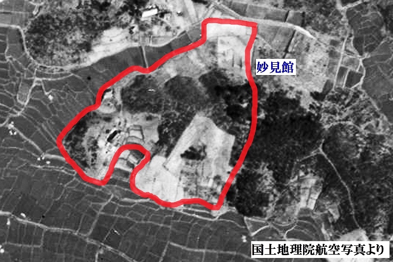 件の在日米軍撮影の航空写真には堀跡のように見えなくもない地形が存在していますが、あまり明確ではありません。