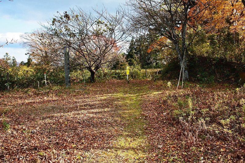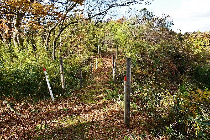 狐館西側の南北に長い丘陵に所在しているとされていますが、片平小学校の校門前からアプローチするルートは途中で行き止まりになります。