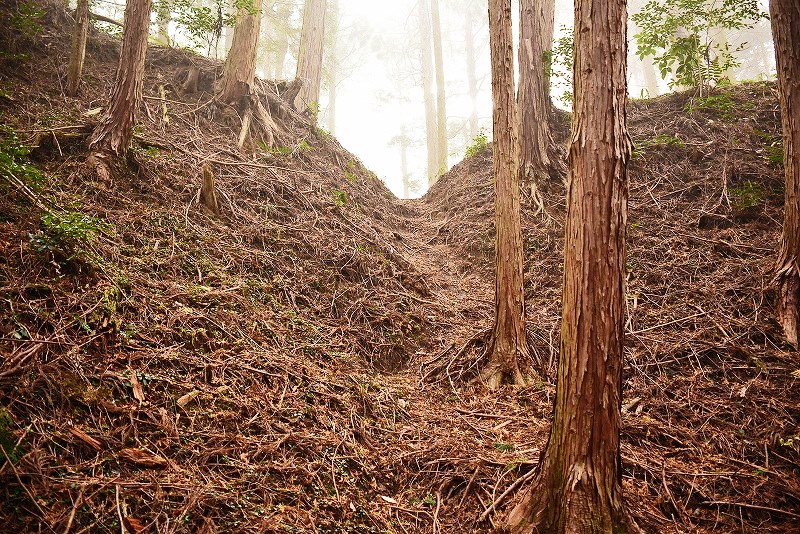 主郭土塁は小口部分をのぞいてほぼ全周しており、内部での高さも南西側では最大5mを有する個所もありました。