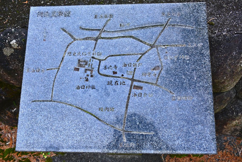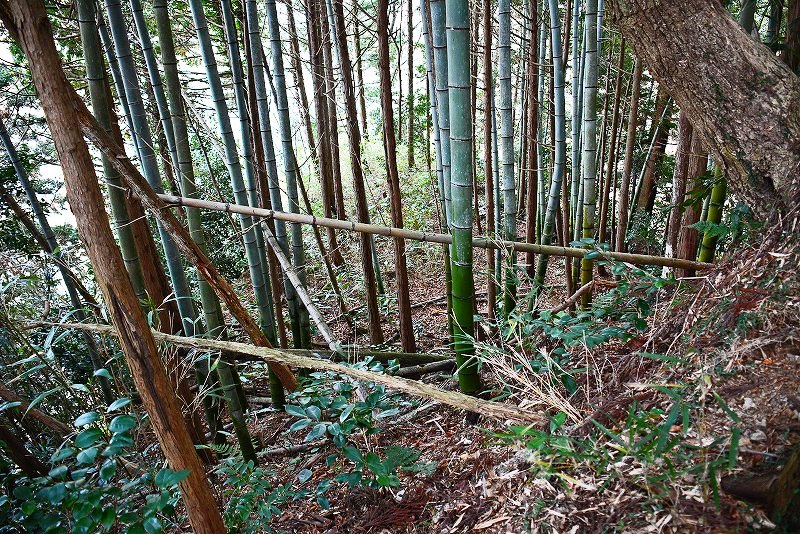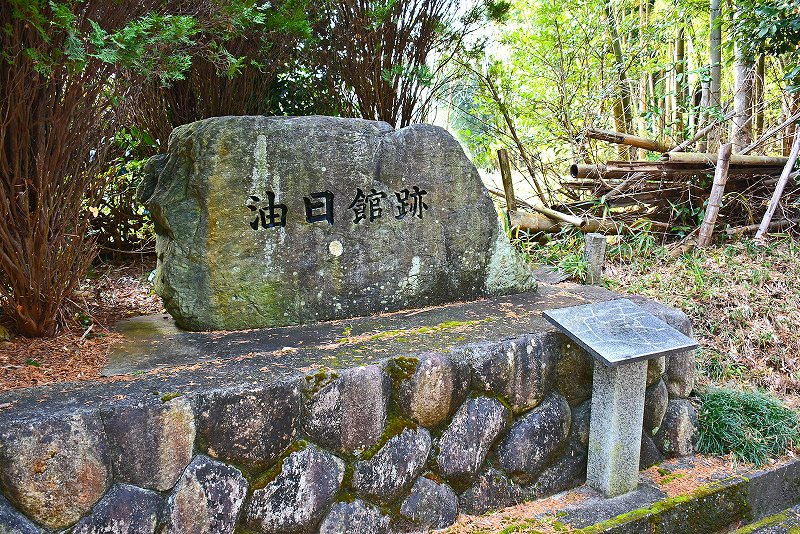 油日神社の西側、善應寺境内西側の竹林の中に堀と土塁が残されていることは確認できたのですが、近くで見学することはできませんでした。