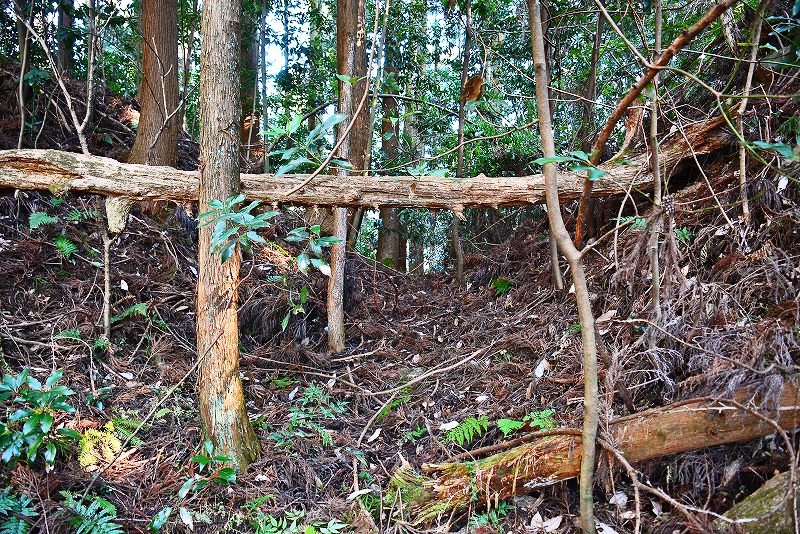 資料館に車を止めて耕作地を抜けて南の台地先端部の竹林を目指すと、手前には幾らか藪がありますが内部は比較的見通しが確保されていました。