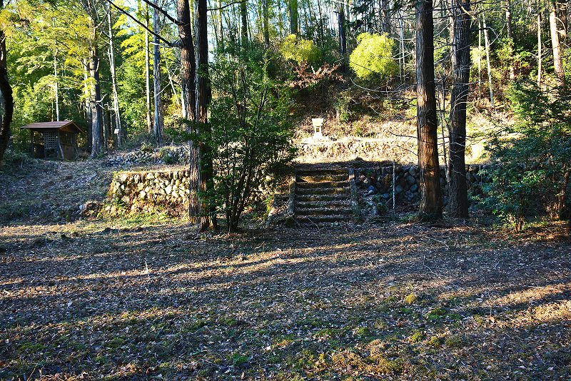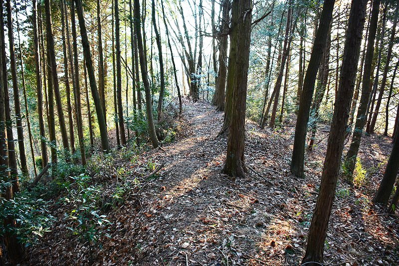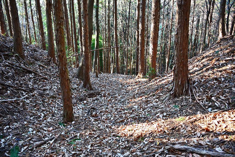 城跡への明確な道はなく、東麓側の耕地を抜け丘陵鞍部から南へ向かうと城跡に到着します。