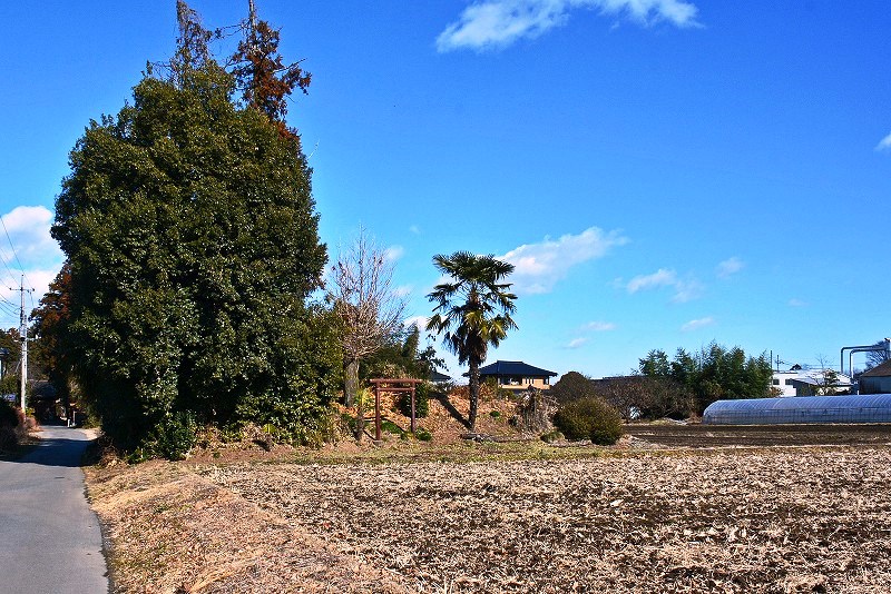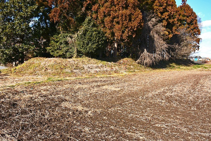 さらに、そのまま参道を100mほど東へとすすむと稲荷社を祀った土塁(3)が所在しています。