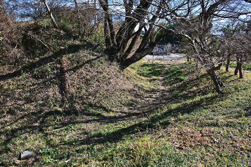 南西部の堀と土塁 南側の山門