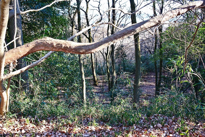 東向きの谷筋に見られる削平地 竪堀への分岐点