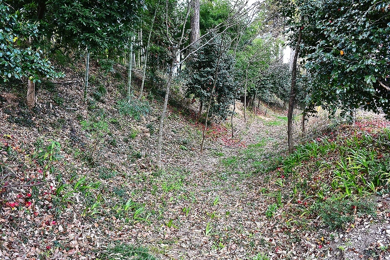 その後集落内の通路を西へと入り、家庭ごみ集積所の個所から緩やかな坂となっている堀跡を進み、一番西側の堀跡まで足を延ばした。