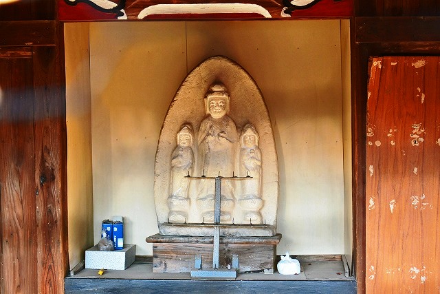 城跡の所在していた周辺の地形全体を確認すべく、城跡北西の前橋市指定重要文化財で南北朝期の作と推定されている「石造薬師三尊像」を参拝した。