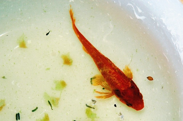 昨日の金魚事件の被害者は、今のところ洗面器の中で健気に棲息中。