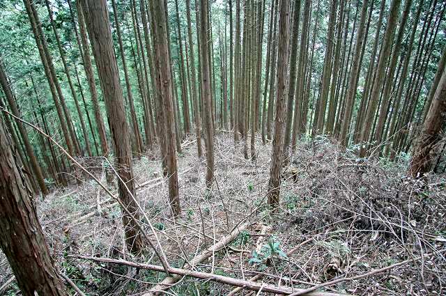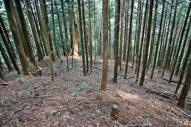 逆に西側からの直登ルートは、稜線から眺めても頗る樹木の生育が宜しいようでありました。