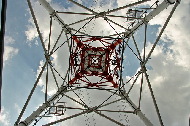 現在堀跡などの遺構の存在を偲ばせるものはなく、見事な紅白に着色された送電線の鉄塔がどっかりと鎮座しておりました。