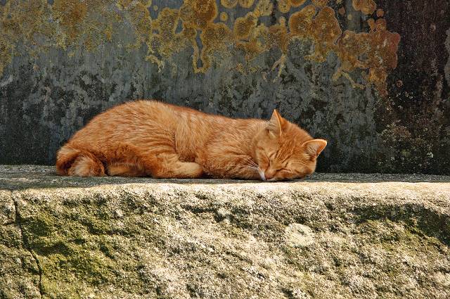 いくら接近しても幾分薄目を開けようとするものの全く起きようとする気配は無く、石碑の冷たさが心地よいようでただひたすら昼寝に勤しんでおりました。
