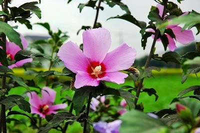 写真の花はその一つで、畑の端に咲いていた通常何処にでも見かける種類の「槿」(ムクゲ)です。