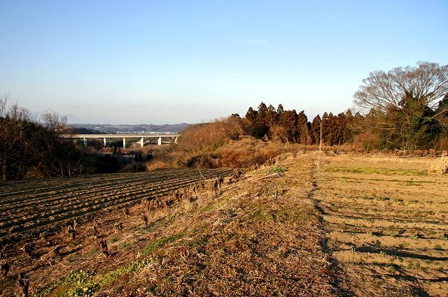 河川の合流点となる畑の先端部分が東の端に相当する模様。