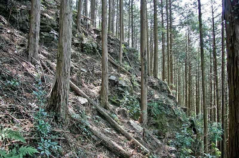 東側には山城では比較的珍しい構堀が南北方向に普請。