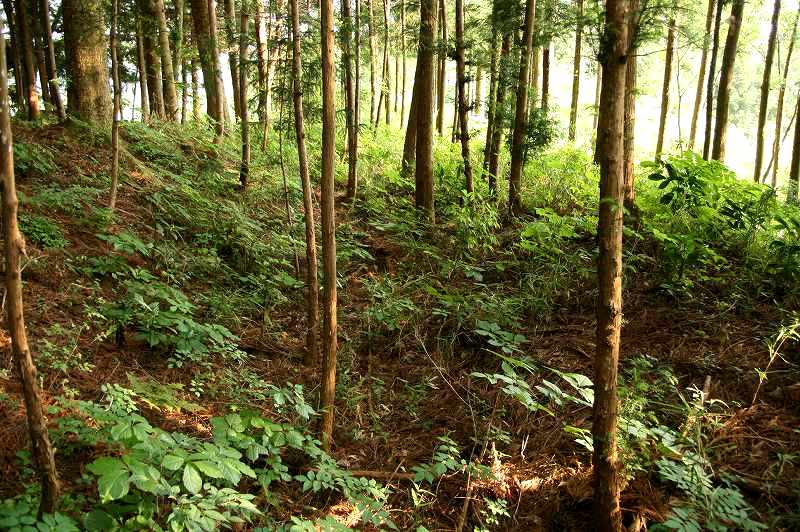 手持ちの数少ない資料によれば、主郭東西南北にも郭、土塁、空堀、堀切などの多くの遺構が存在している模様。