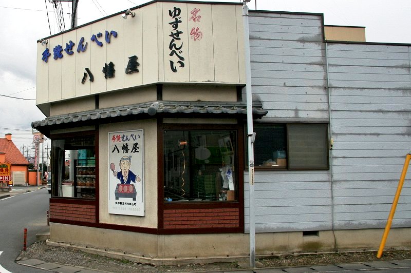 八幡屋という屋号の手焼き煎餅のお店の看板も撮影(唖然)