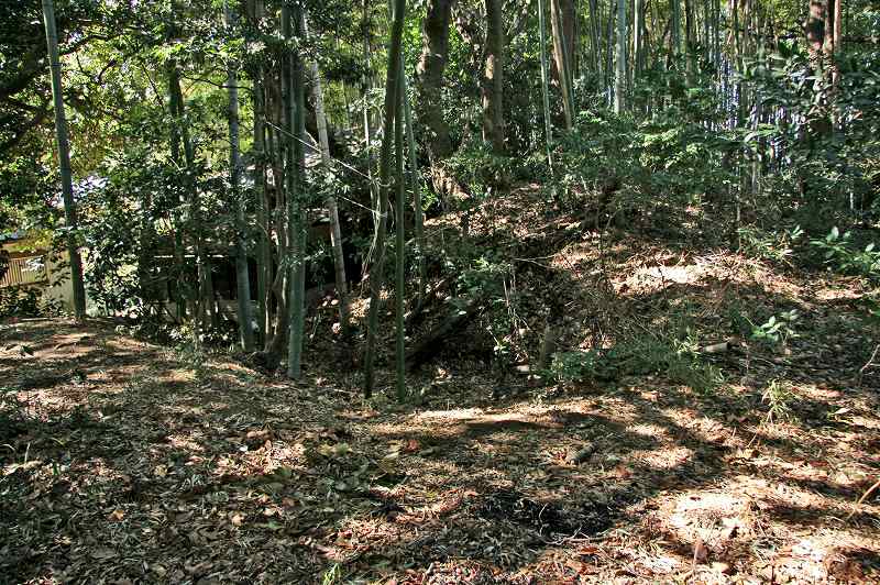 ほかには南西側の八坂神社境内・消防団車庫の個所から続く切通しとなった急傾斜の坂道地形が堀切の様にも見えるのでありました。