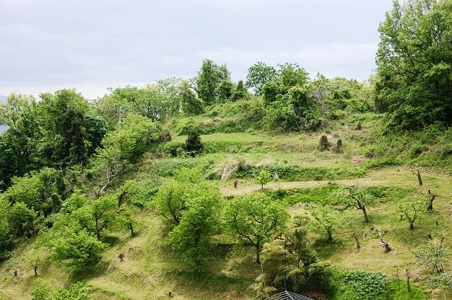 止む無くサクランボ畑となっている雛壇状の腰郭先端部からアプローチ。