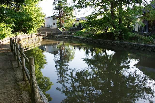 大久保小学校北側に所在する夫々長さ50mほどに東西に分かれた水堀が関連遺構と考えられます。