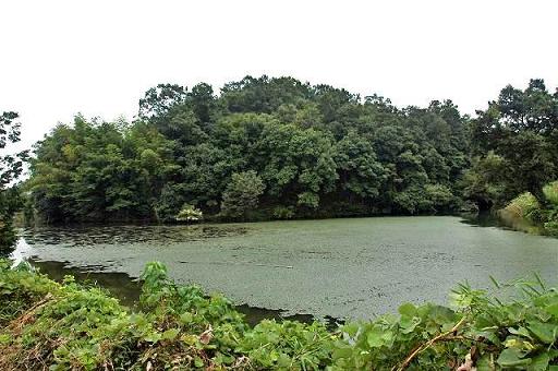 方位と地形から推定すれば、峠の分岐点から西側のわき道にそれて、この沼沿いの道を辿れば必ずや小高氏館跡の丘陵へと辿り着くはずと確信。
