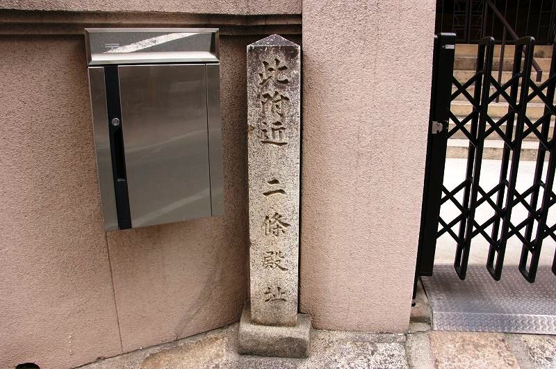 秀吉が築いたとされる二条城東側の城跡ですが、西福寺境内の南側(押小路通)に石柱と解説板が設置されているだけです。