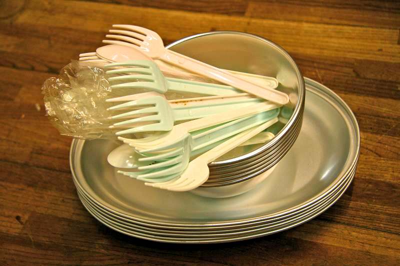とはいえ100本近い大量の古びたプラスチックのスプーンとフォークの束を抱えて途方にくれたのでありました。
