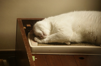 そうしたなかでもお気に入りは小さな段ボールの箱で、昨年末あたりから昼寝の時には必ず丸くなって入っていました。