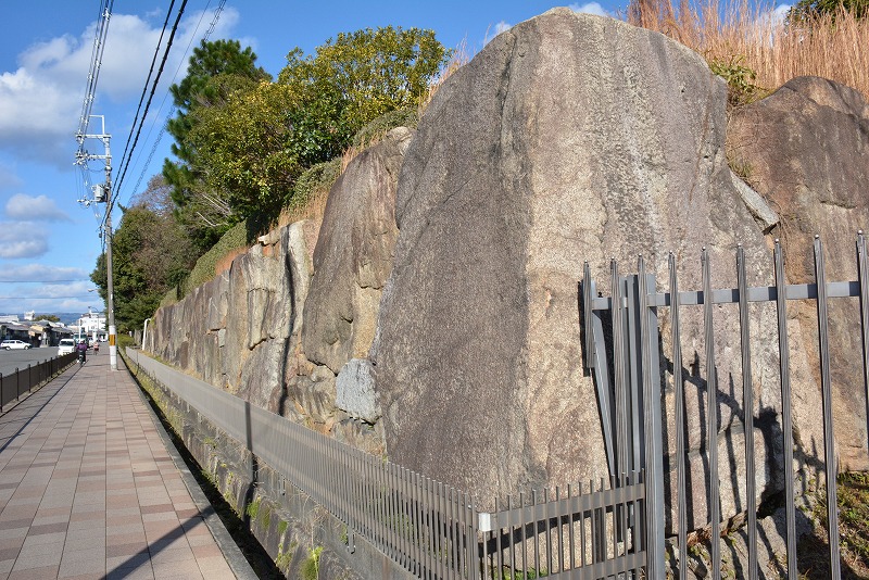 この画像は平成知新館前に復元された往時の石塁跡のラインとのこと。