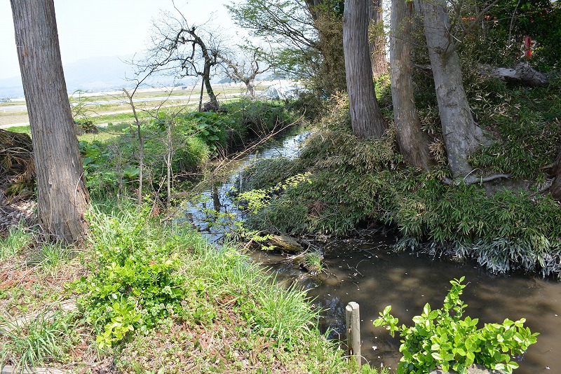 集落の宅地周辺に堀跡の名残と考えられる水路が確認できた。