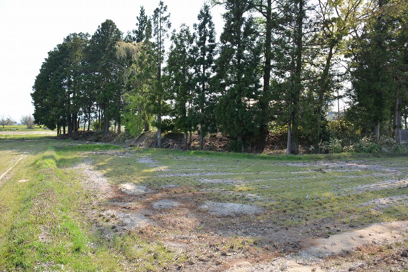 周囲の水田には外郭部の堀跡の名残も伺える。