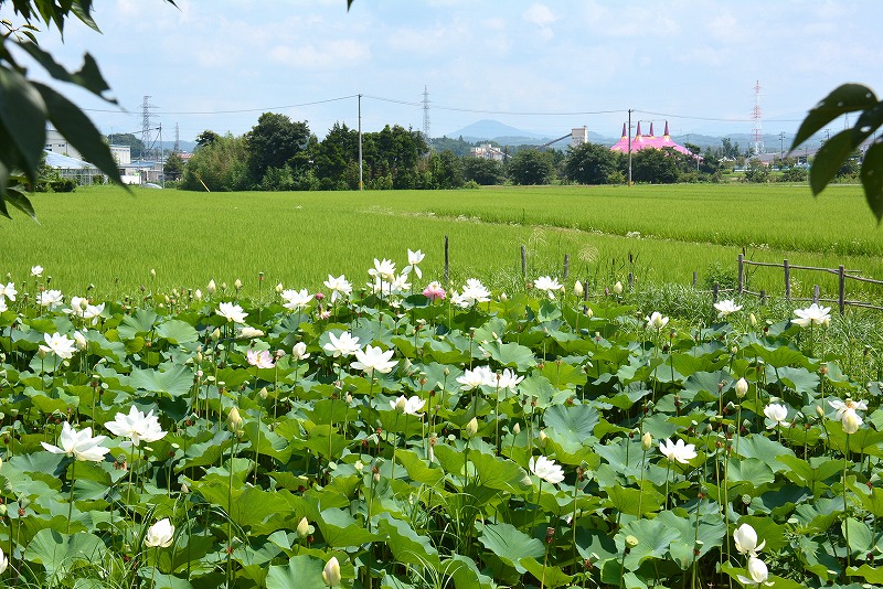 おりしも東側の堀跡には白花の蓮が満開を迎えあたかも極楽浄土の盛夏を髣髴とさせるような景観が眼前に広がっていた。