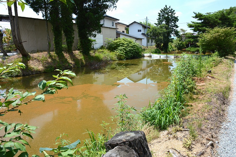 猪苗代湖に注ぐ西へと流れる水路沿いに幅数メートルほどの堀跡らしい窪地と土塁跡とも見えなくもない藪の中の盛り土のような地形を確認できた。