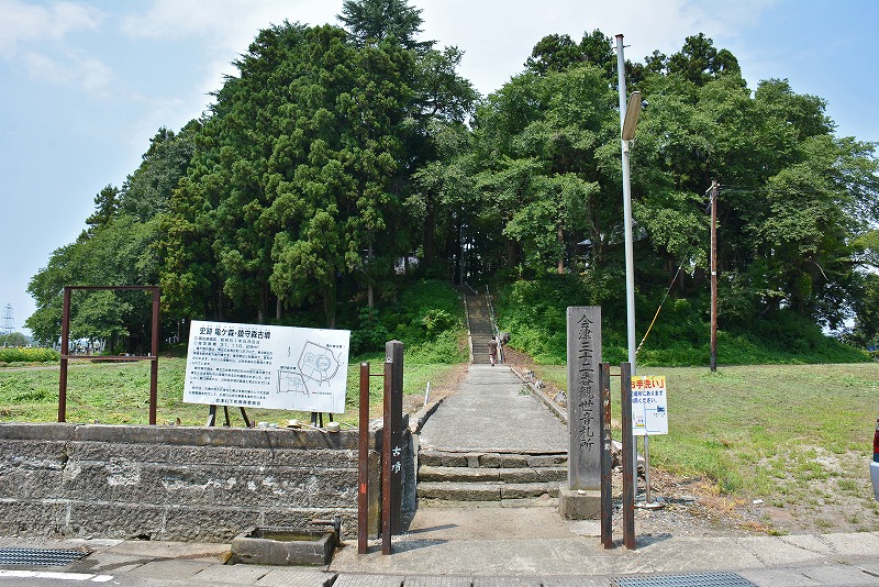 現状では水田面との比高差は目測で約8メートルほどを測るのみだが、往時には亀ケ森古墳周囲の堀跡が機能して、より比高差を伴っていたであろうことが想定された。