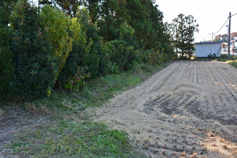 しかし市道沿いから拝見した限りでは、広大な敷地内でたまたま稲刈り後の脱穀作業の真っ最中でもあったが、屋敷林の境目などを含めてかつての城館跡にかかわるような表面遺構の存在は殆ど期待できそうにもなかった。