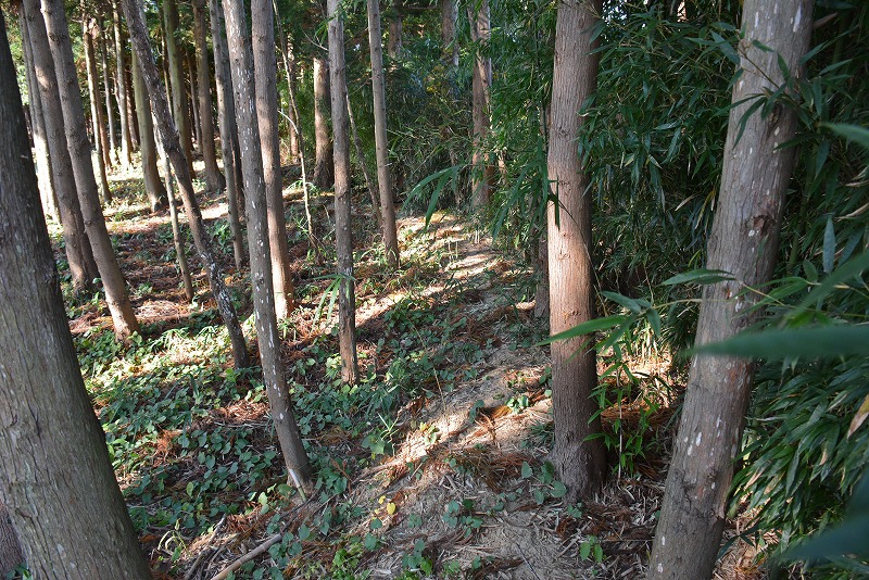 ここの前、字諏訪前付近の低丘陵北側一帯に明らかに人工的で細長い削平地形認めたので暫しの間うろうろとしていたが、既存の集落からも隔絶していることもあり、とりあえずおそらくは植林に伴う地形改変であろうと推定することとした。