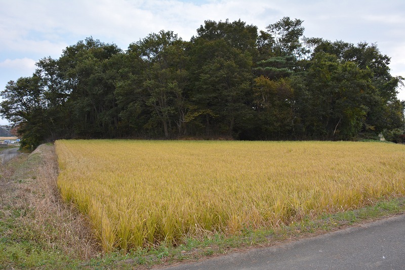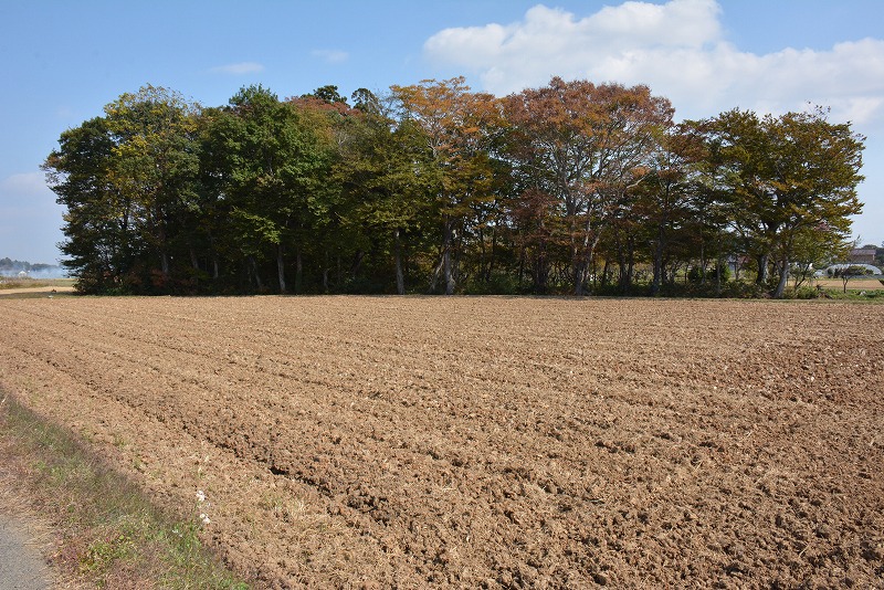 そのあたりを拝見してみると民家の北側、水田との境界に屋敷林と思われるような細長い平地林が残されており、もっとも平地に所在する城館跡としての景観に相応しい印象が感じられた。