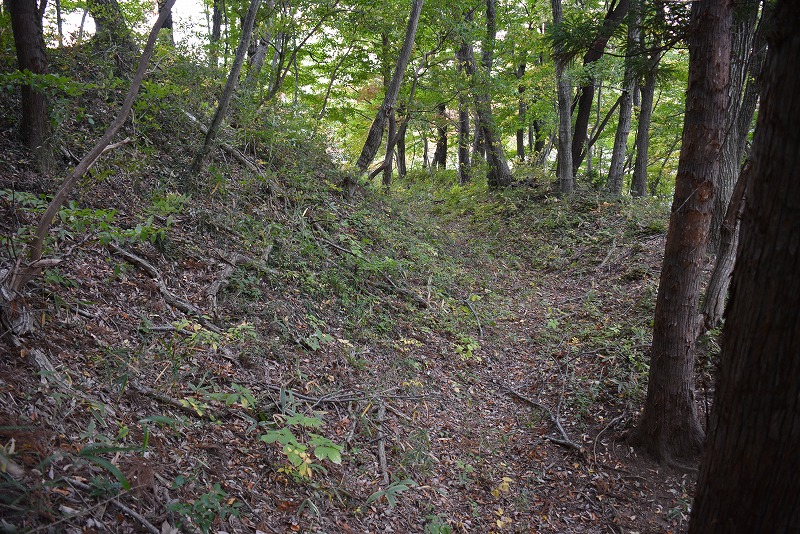 また、空堀の外部には西側と北側を中心として土塁も現存しており、本来は二重堀であった可能性もまた一考に値するのかも知れない。