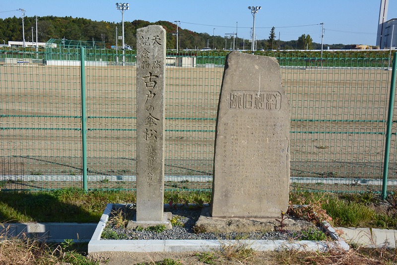 近代に建立されたものではあるが、グラウンドの南辺に大鏑館に関連する石碑が存在している。