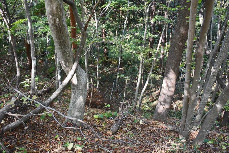 北側には切岸の普請跡も窺われ、南側には帯郭状の地形も残されていた。