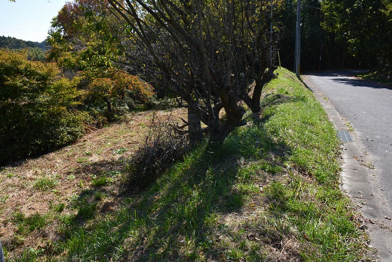 下記の画像は丘陵地帯などによくありがちな土塁状および郭状の地形で、小字馬場付近にて撮影したものである。