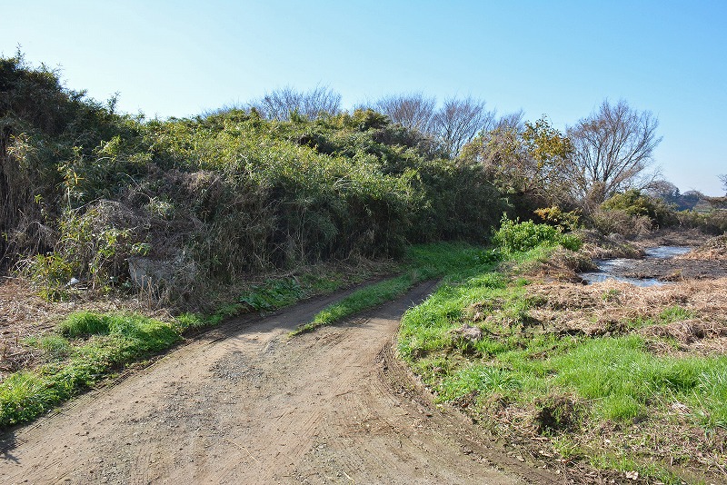 城跡へのアプローチは丘陵南側、墓地西側の細道をそのまま道なりに150メートルほど北上する。