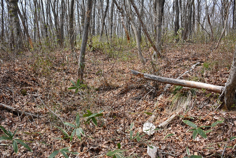 南北方向の尾根筋上には東北電力の送電線保守のために整備された作業道が通ってはいるのですが、あくまでも送電線用鉄塔とその周辺の保守のためのもので従来の里道の方は事実上殆ど廃道になってしまった模様でした。