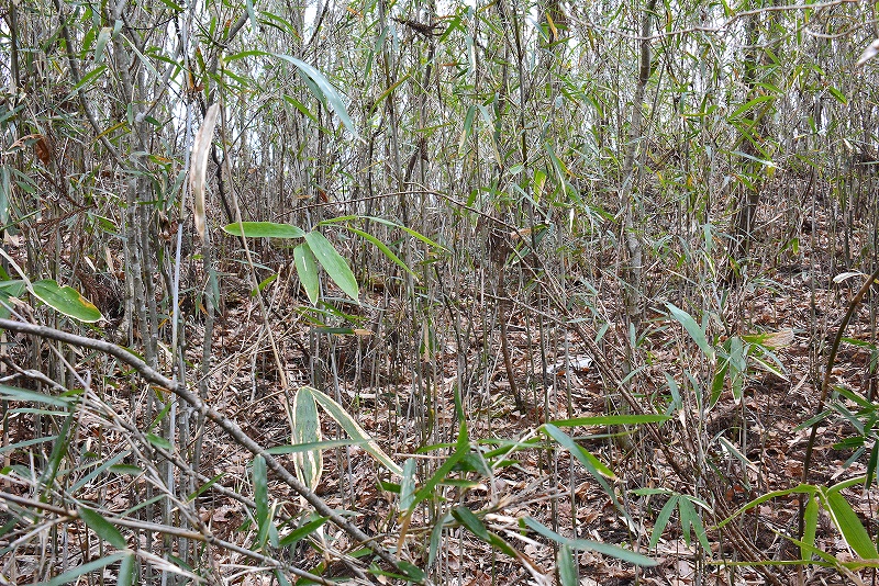 予めそれなりの覚悟をしていたとはいえ、予想通りにこのあとの約100分間のうち半分以上は叢生するアズマザサやノイバラなどの藪と格闘するというような結果に追い込まれました。