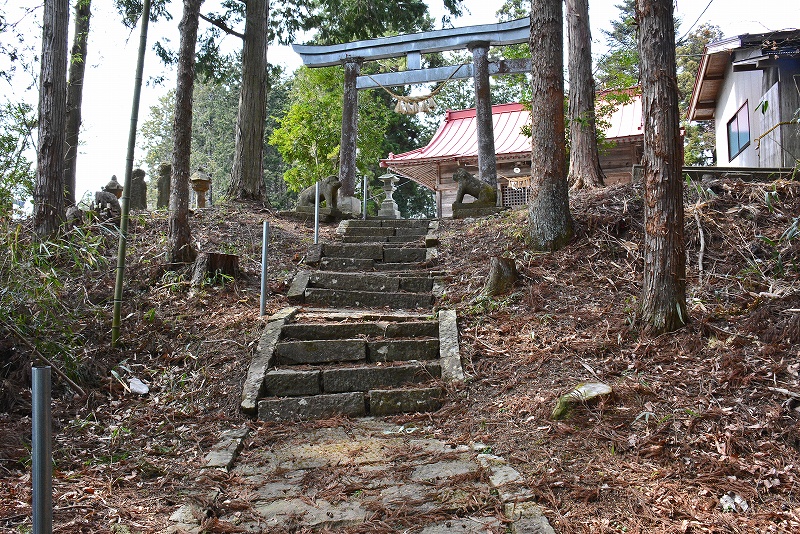 神社境内は駐車場整備などにより景観が変貌してはいるものの、その一方でそれなりに城跡らしい地形の名残を伴っていましたが、やはりどちらかといえば空堀跡と土塁の位置関係に疑問が残り、かつその規模が小さすぎるという印象がありました。