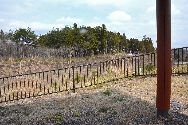 下記の画像では柱のわきに写りこんでいる右側の木立付近の丘陵がこれに該当するものと思われます。