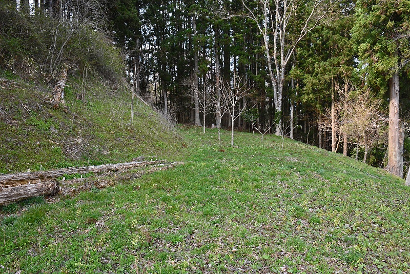 寧ろ帰り際にその存在に気づくこととなった東側斜面に刻まれた竪堀のような地形の方が目立ちます。