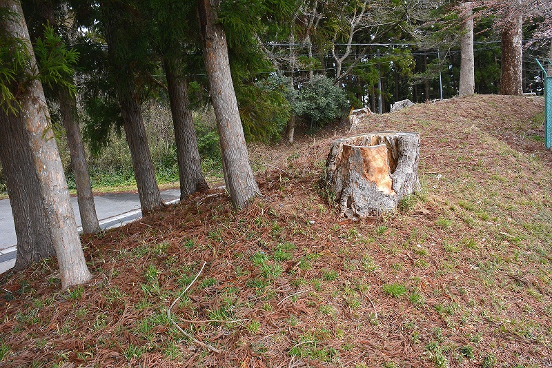 画像に写りこんで入る説明版のようなものは学校関係者の方の顕彰碑に関するもので、城跡についてはあくまでも標柱のみとなっておりました。